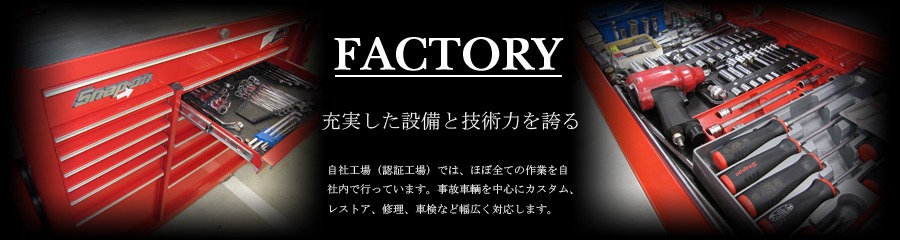 フレーム修正機という機械を使って、衝突事故などで過大な衝撃を受けた大破事故車両の歪みを、ミリ単位で修正することができます。